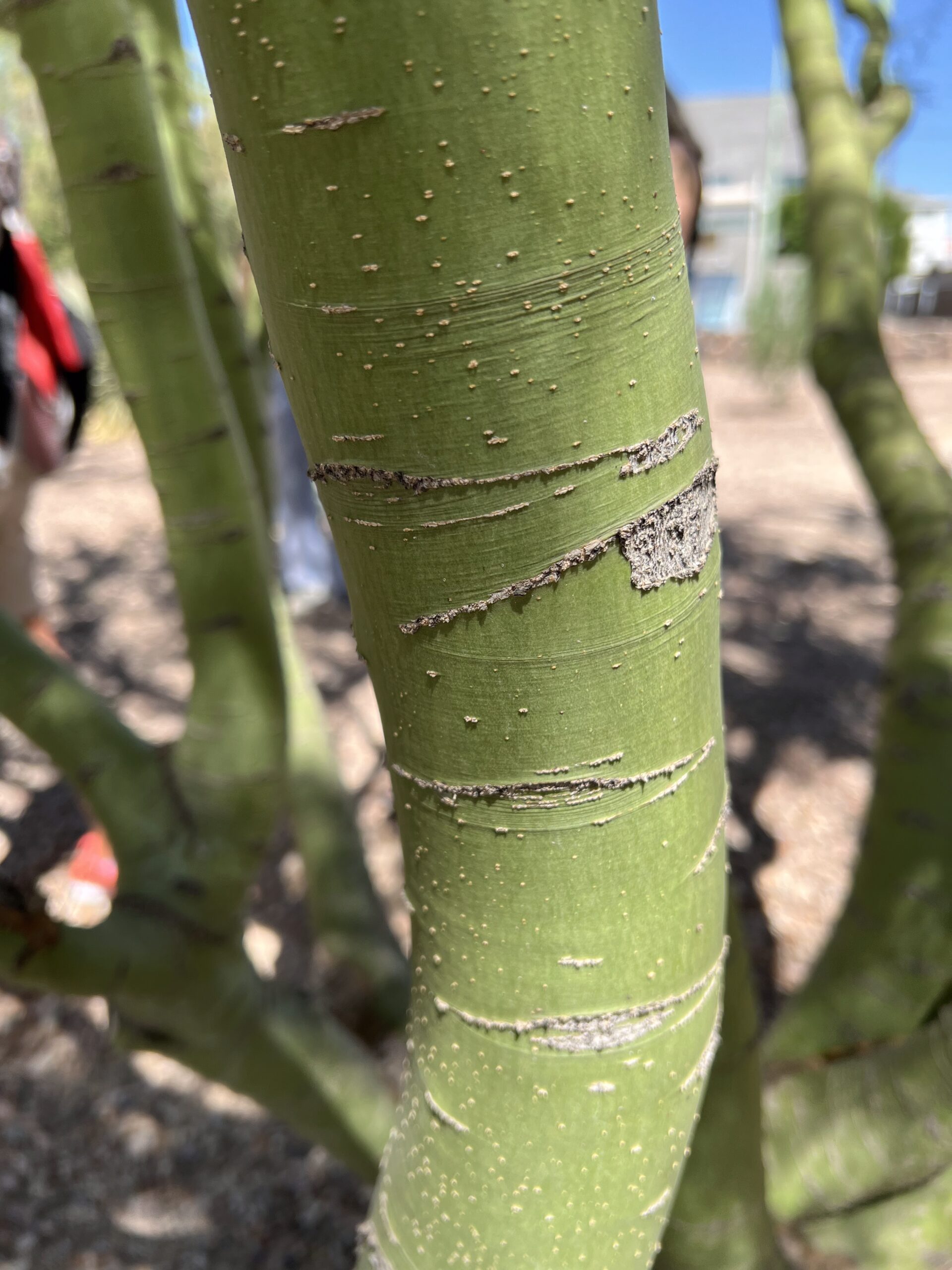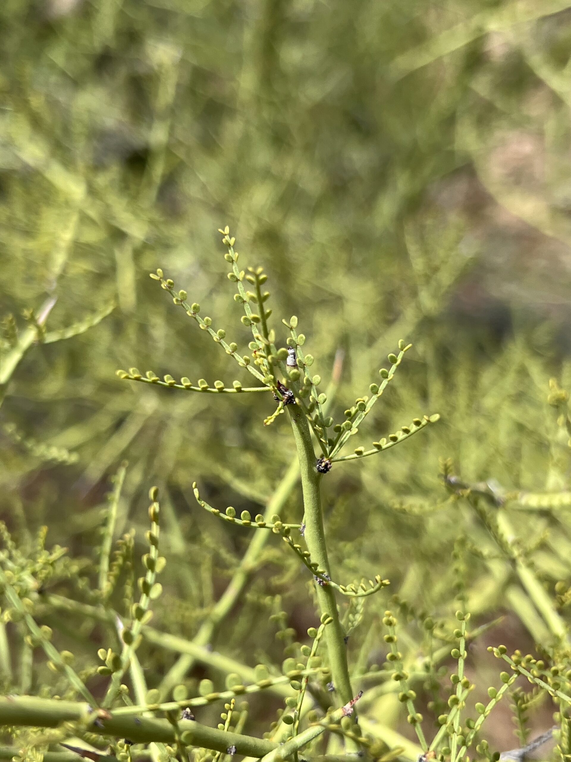 Native, slow-moderate growing tree that gets up to 30ft. Can be single or multi-trunked, with thorn-tipped branches and small leaves. Great nesting habitat for native birds. Tolerant of heat, cold and poor soils. In extreme drought or cold, tree may drop leaves. Yellow flowers bloom for a few weeks in late spring, usually following the flowering of the Blue Palo Verdes.