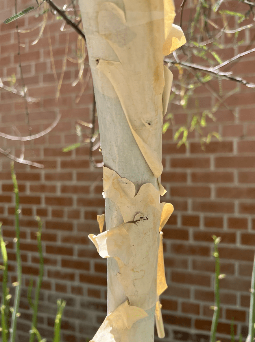 This Sonoran desert native is best known for its white peeling bark. Palo blanco means “white stick” in Spanish. It is originally from Sonora, Mexico, so you’ll need to place it somewhere it will stay warmer in the winter. The palo blanco is a shorter weeping tree that has a creamy colored flower in the spring.